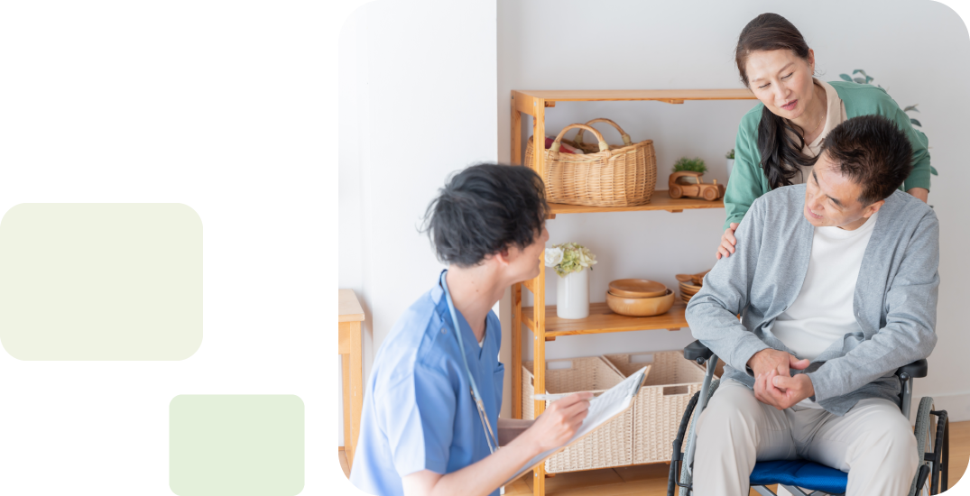 住み慣れたご自宅や地域で暮らせるよう、「すいじゅの杜」に在籍するケアマネージャーがケアプランを作成し、その後のケアの実行を見守り、管理します。またサービス利用の際に必要な介護保険の申請代行や在宅療養についての相談も行います。